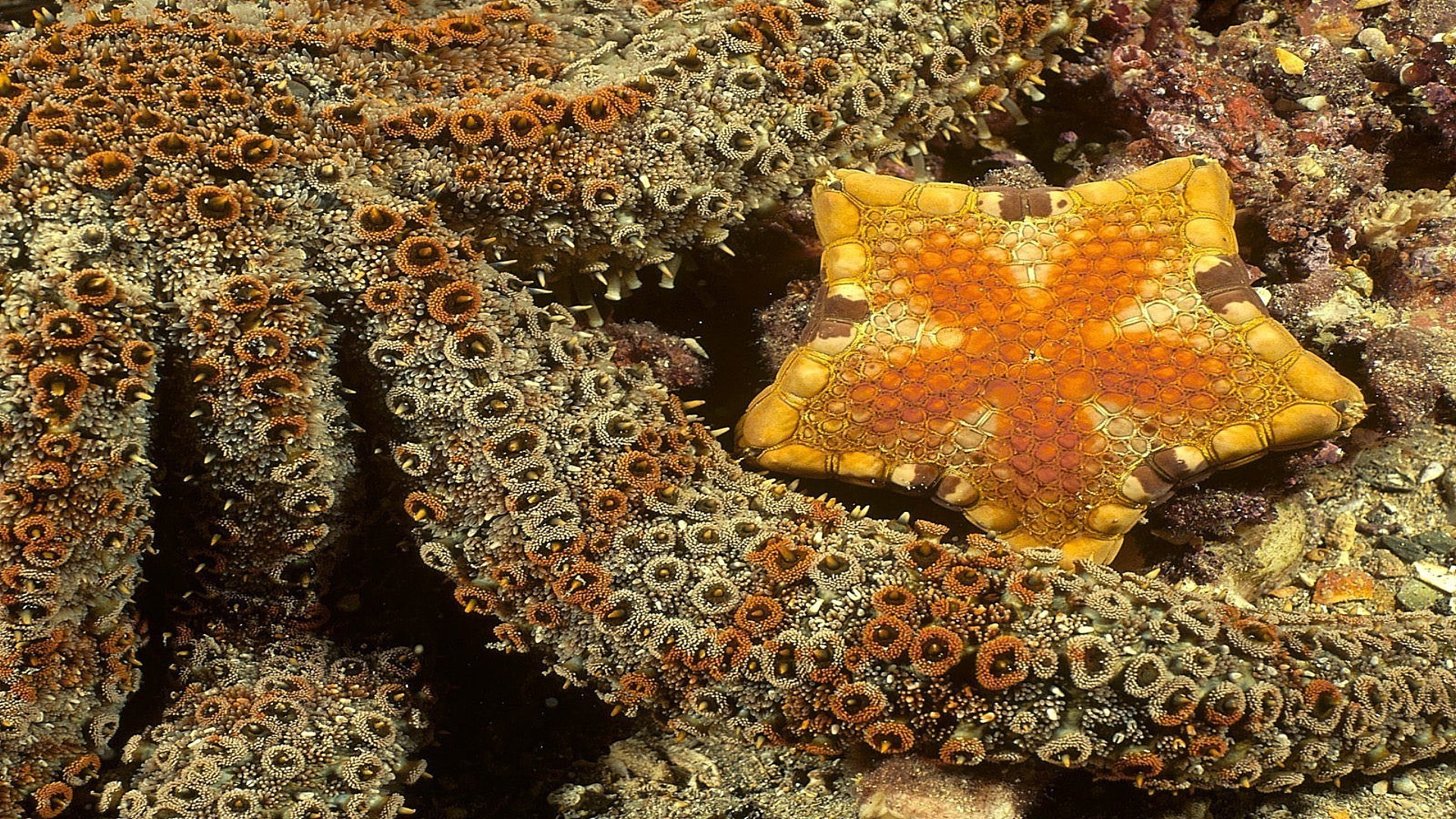 Fotografia macro di una stella marina sulla spiaggia. Costa