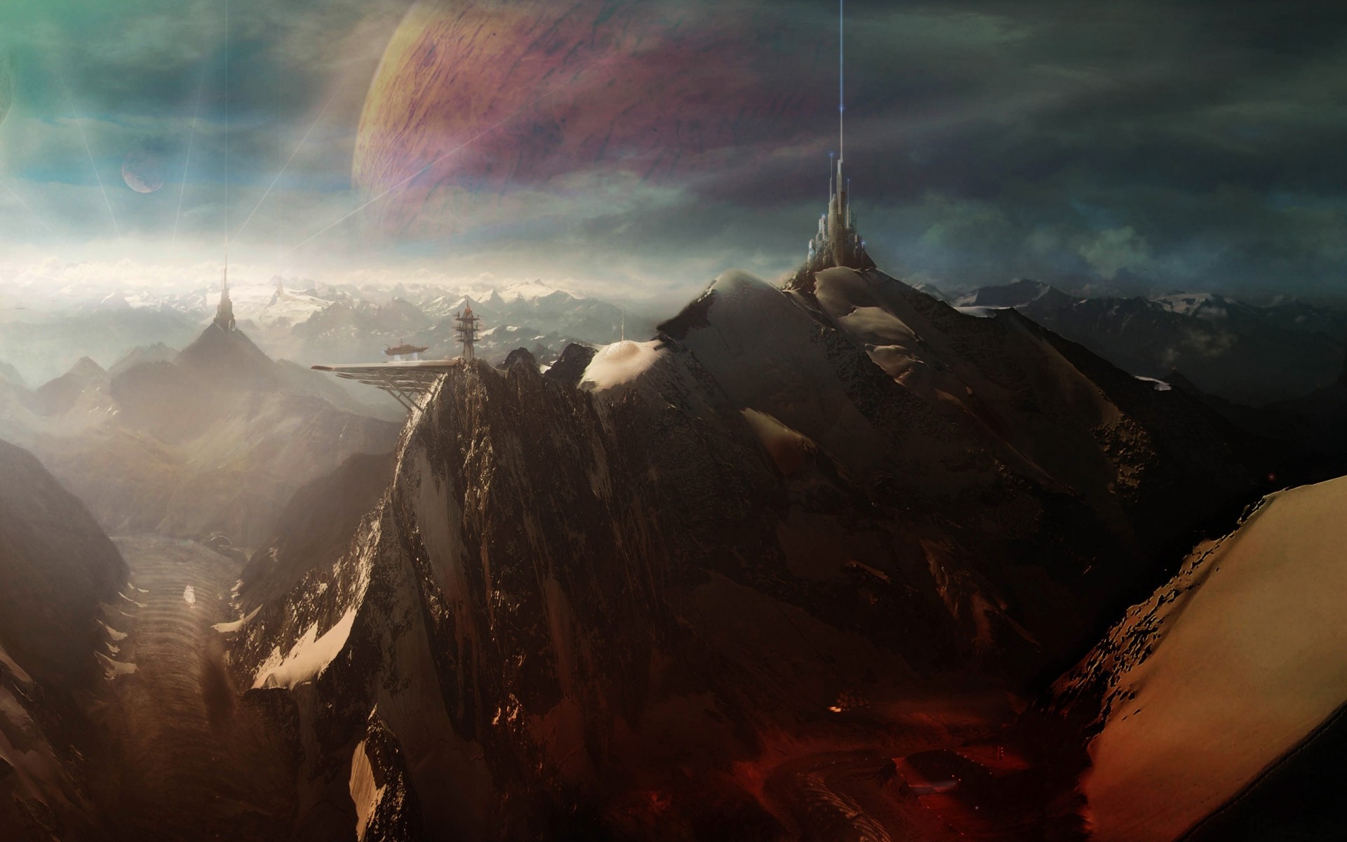 Casa in stile fantasy con finestre illuminate in piedi vicino all'acqua