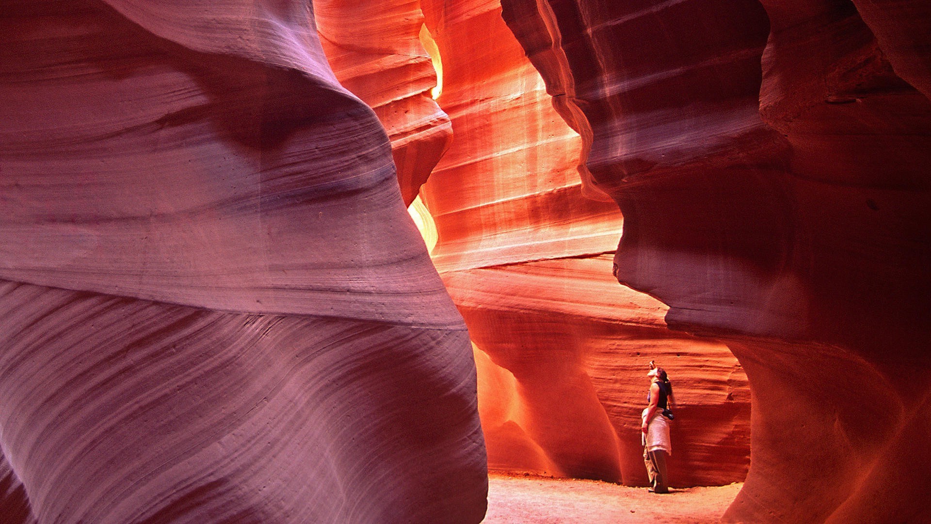Una ragazza in una grotta attraverso la quale il sole filtra