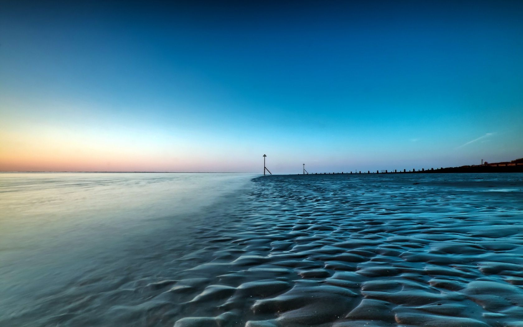 La spiaggia di sabbia solitaria incontra il tramontoLa spiaggia di sabbia solitaria incontra il tramonto
