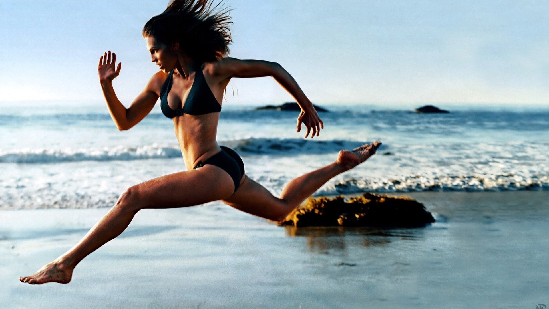 Due belle ragazze in costume da bagno sullo sfondo del mare con le barche e la costa edificata