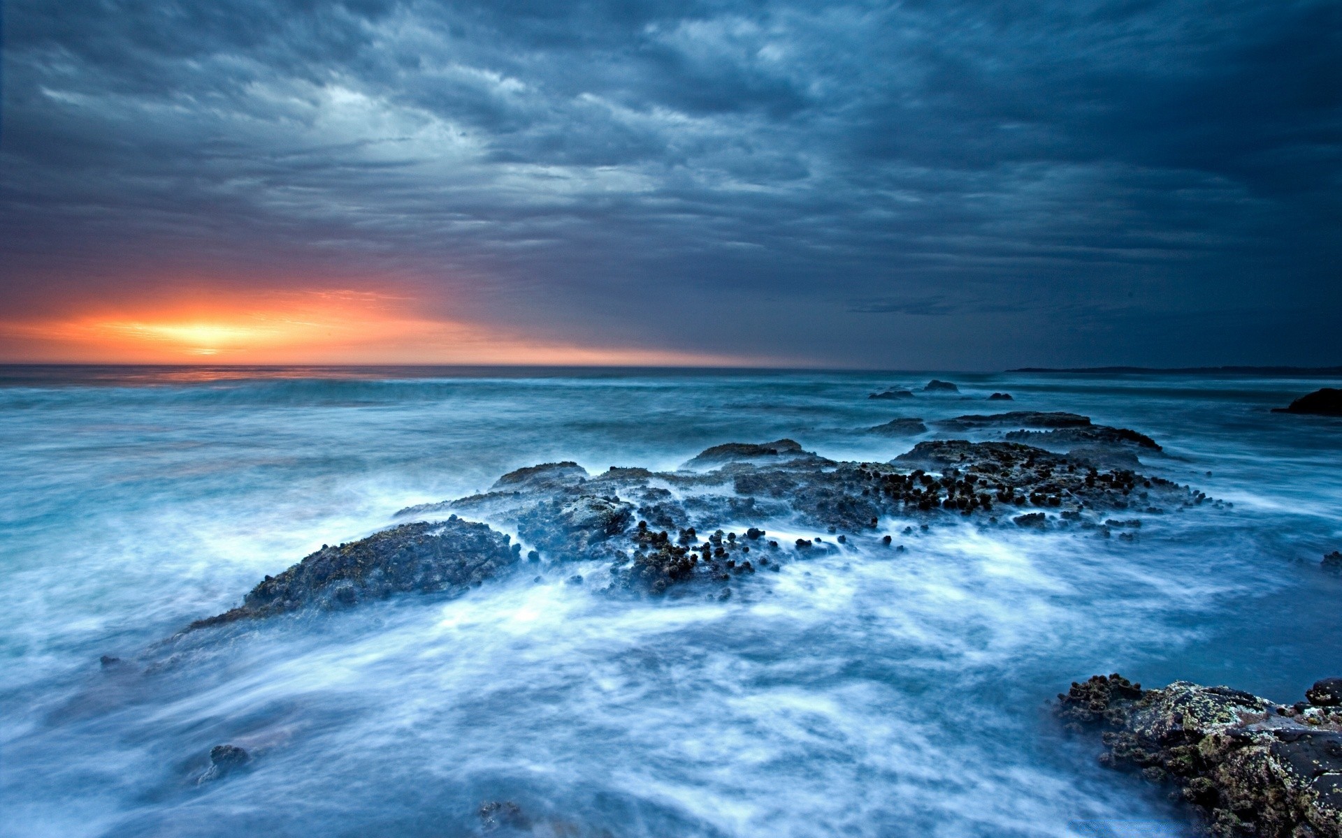 Tramonto sulla spiaggia oscura