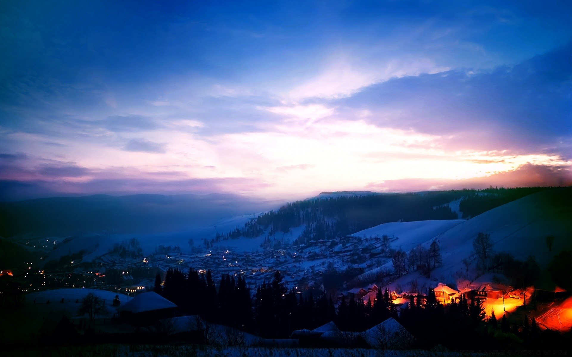 La strada invernale e le luci delle auto che sfreccianoLa strada invernale e le luci delle auto che sfrecciano
