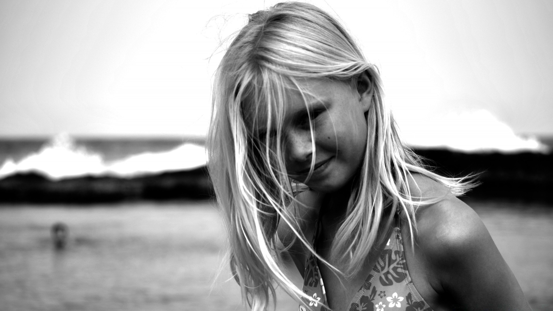 Ragazza con i capelli biondi sulla spiaggia