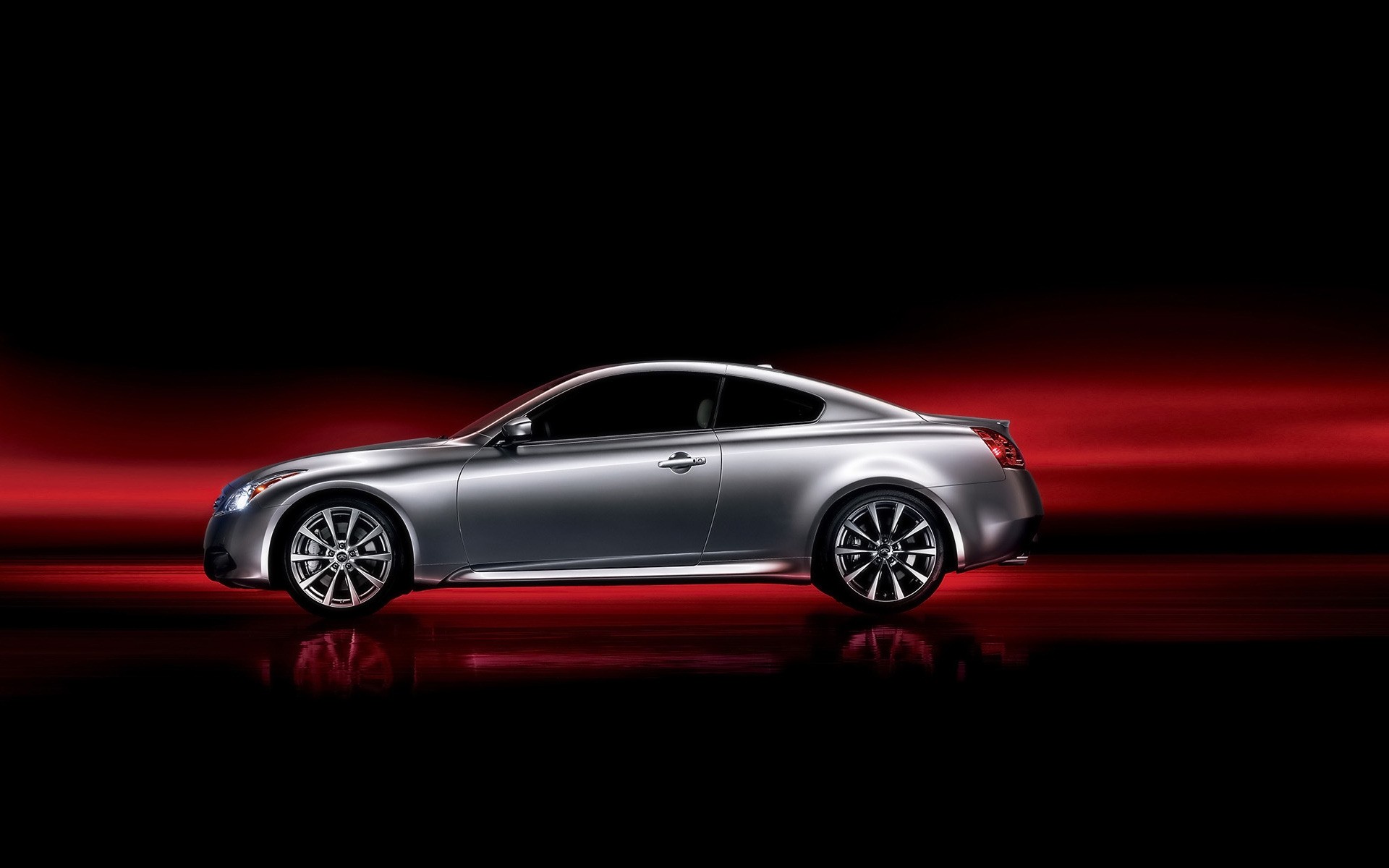 Chevrolet rosso e il suo riflesso in una pozzanghera sullo sfondo delle montagne