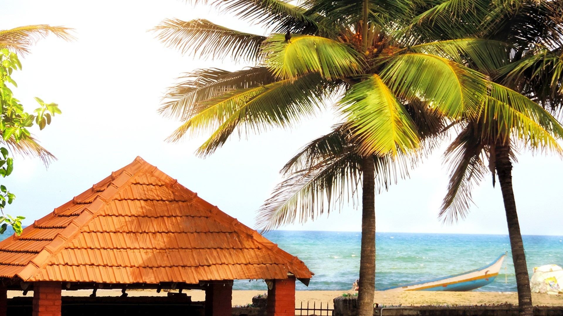 Spiaggia ai tropici. Oceano come nel palmo della tua mano