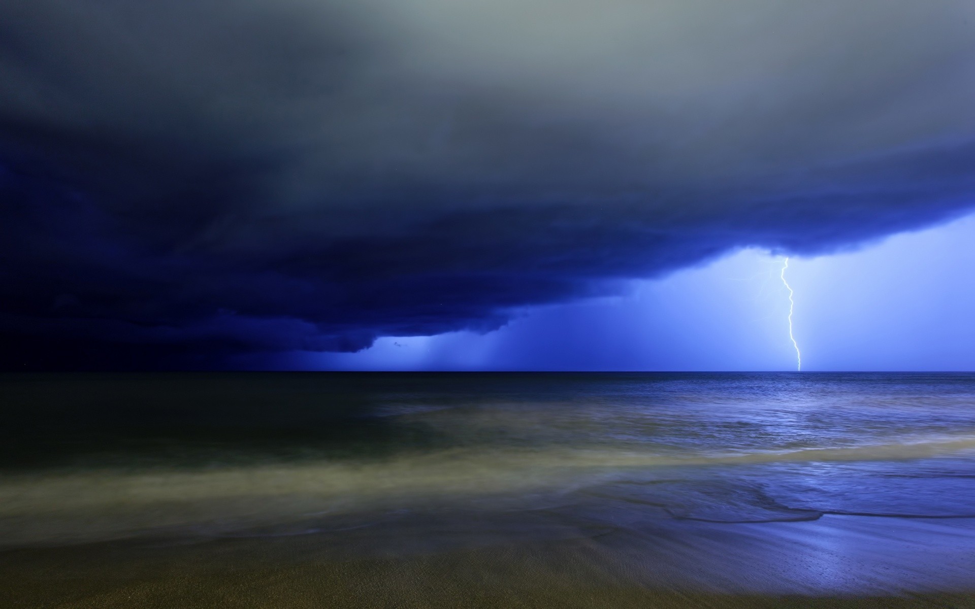 Oceano sotto il cielo tempestoso di notte