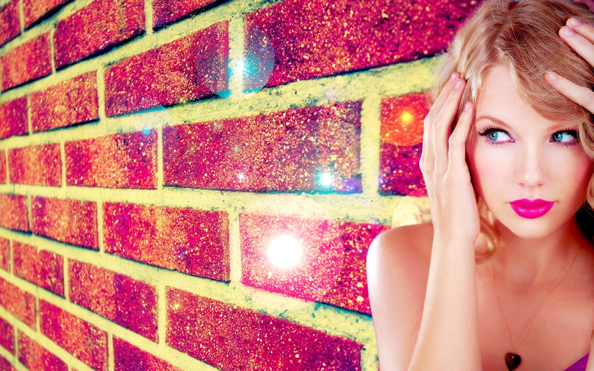 Taylor Swift con rossetto rosa caldo