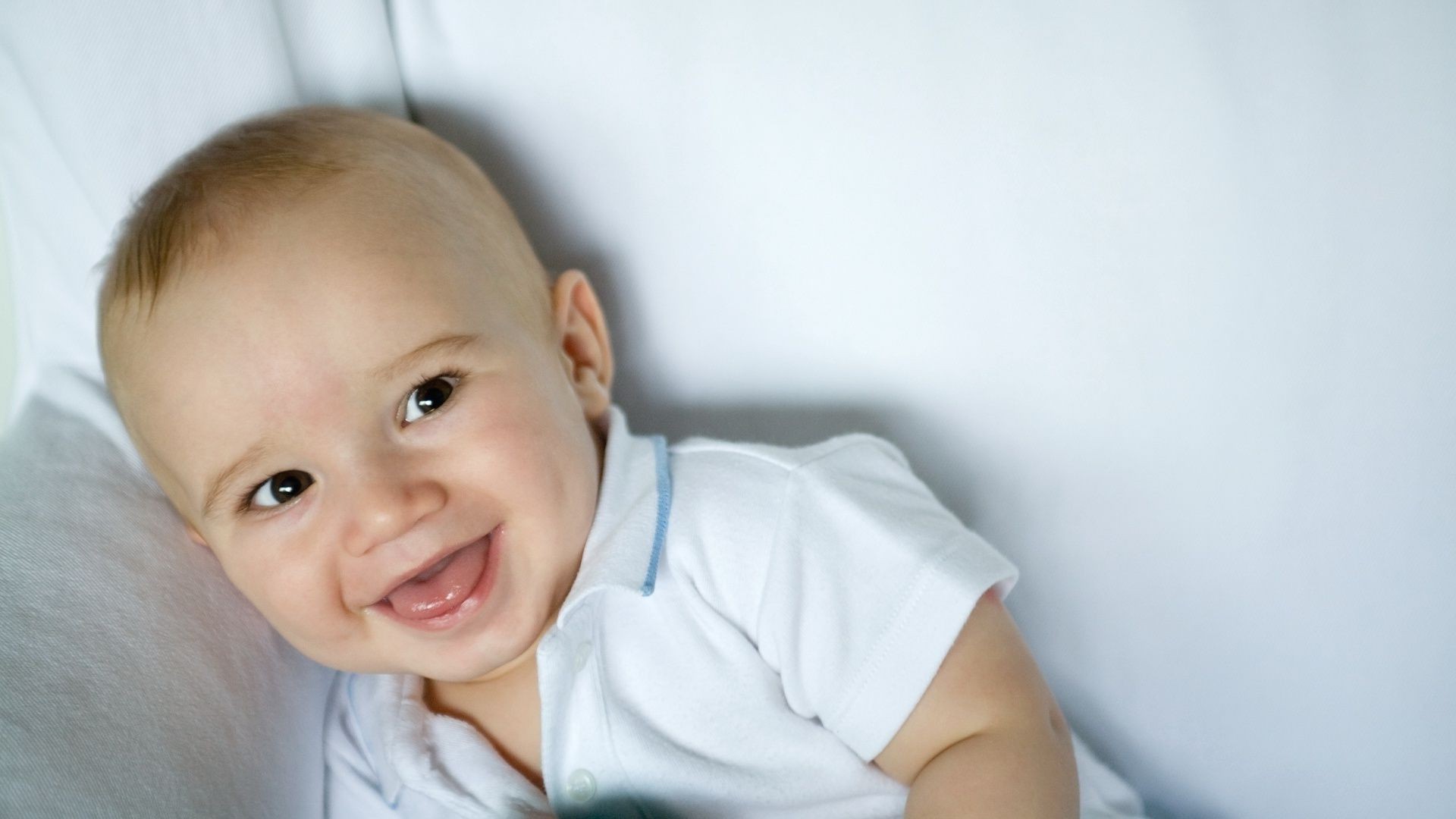 Bambino che ride in maglietta bianca
