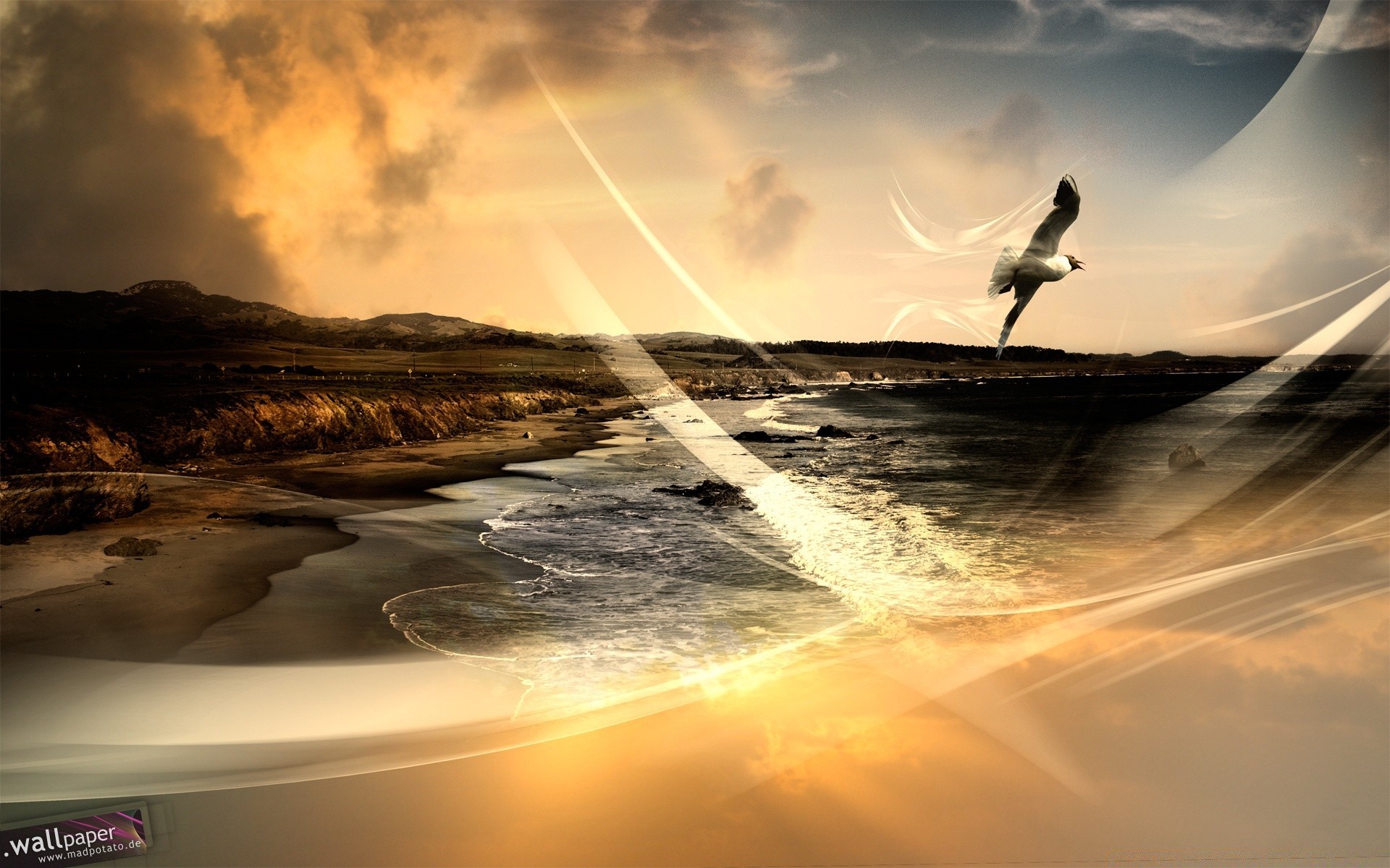 Splendida alba sulla spiaggia del mare ondeggianteSplendida alba sulla spiaggia del mare ondeggiante