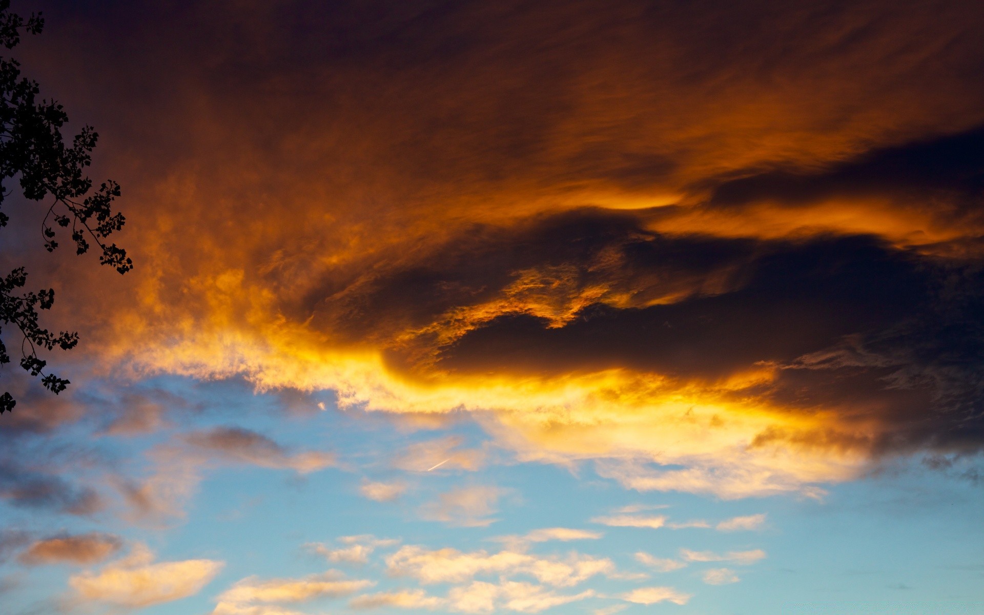 Bagliore rosso del tramonto nel cielo nuvoloso