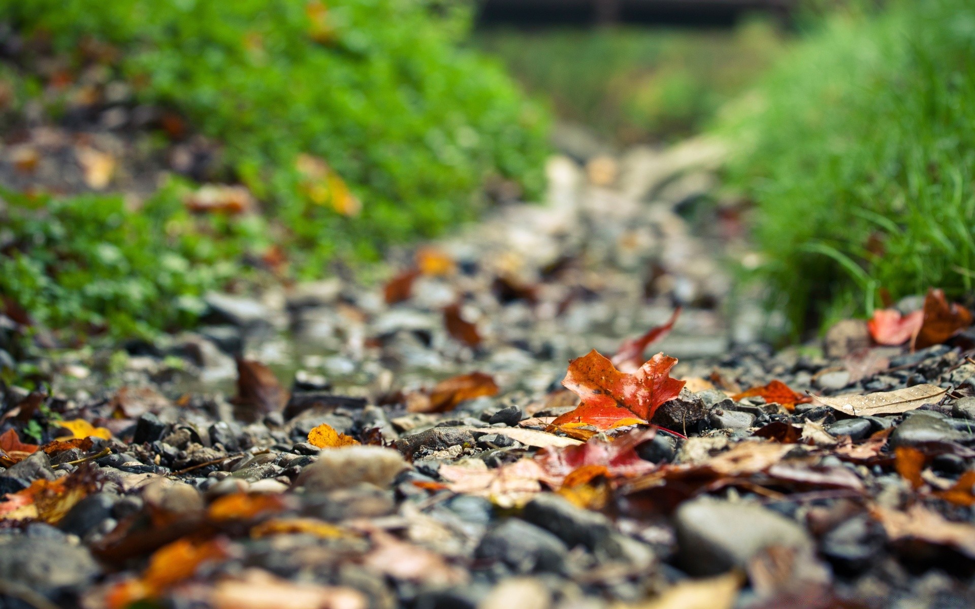 Sentiero di pietra coperto di foglie autunnali