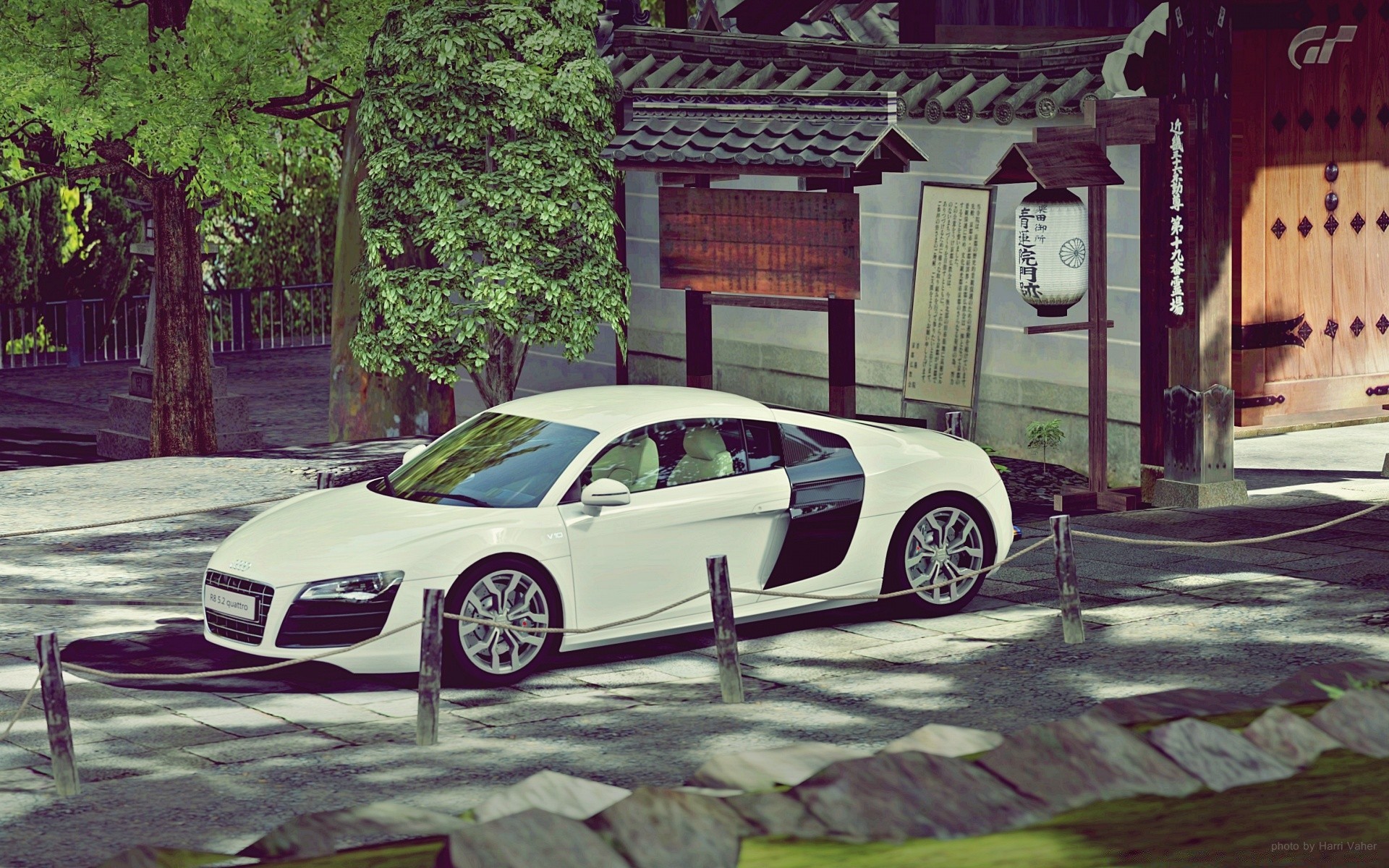La decappottabile bianca libera è già pronta a correre in lontananza paesaggi di lusso