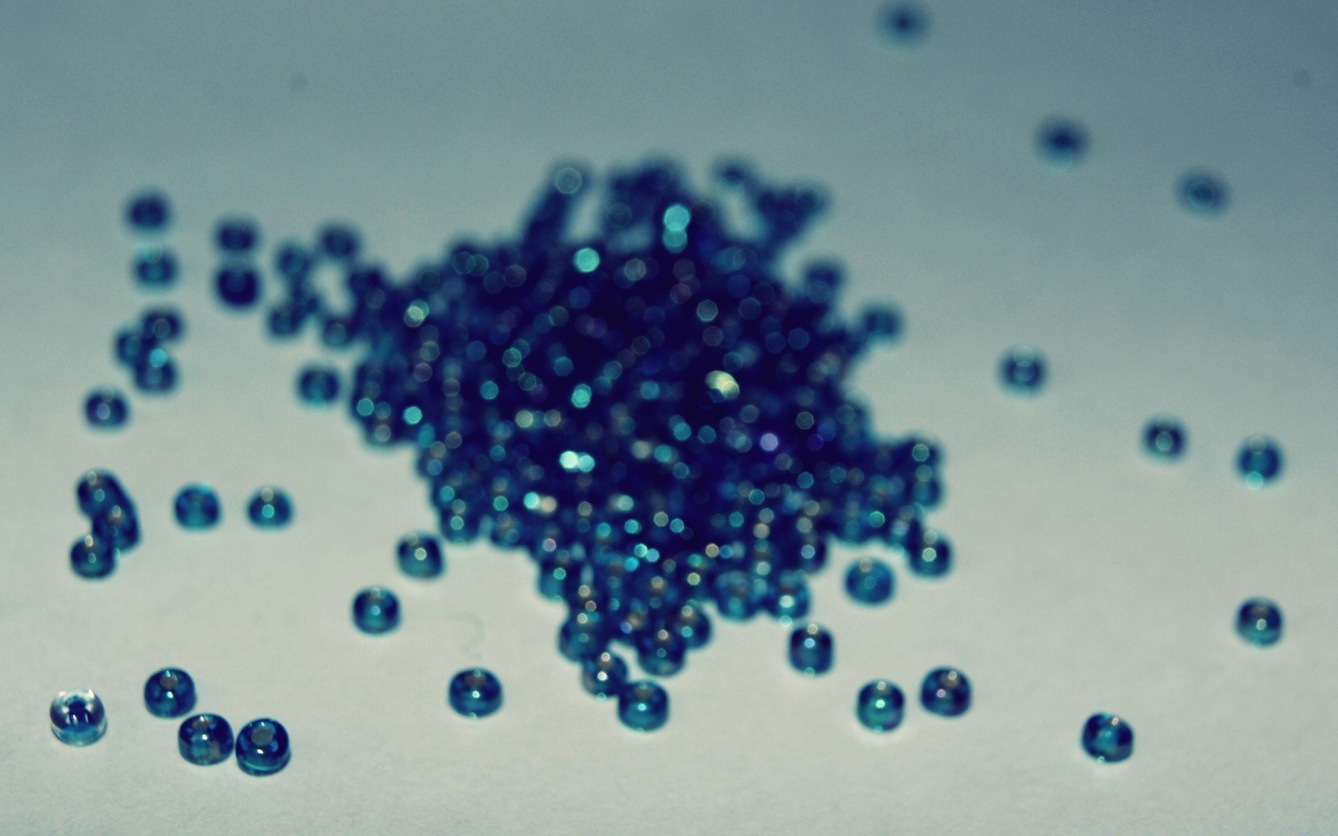 Perline blu sparse sulla superficie bianca