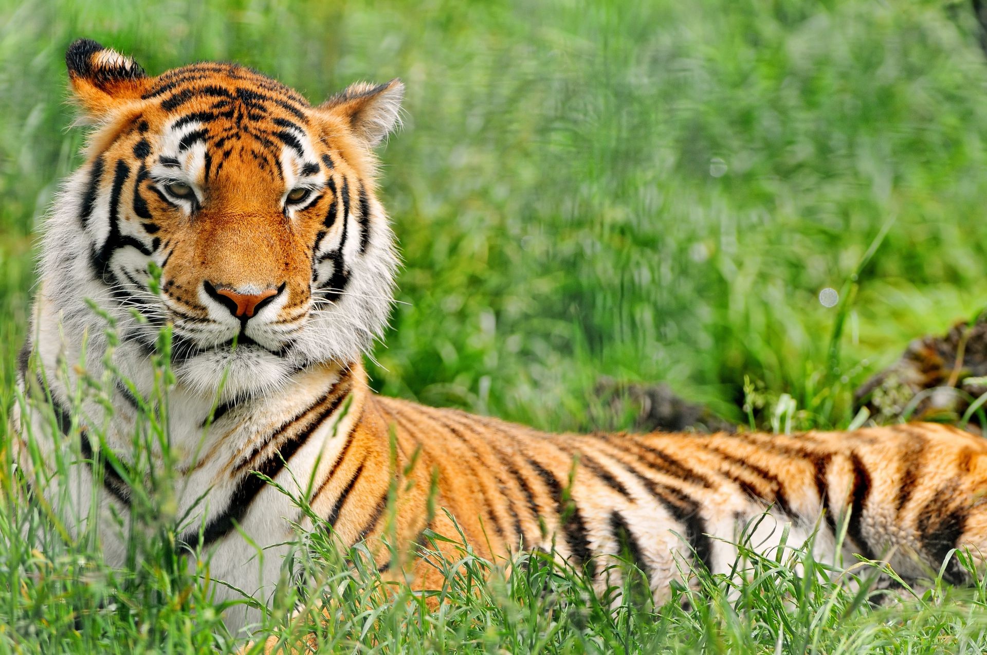 Fotografia di animali selvatici con una tigre sdraiataFotografia di animali selvatici con una tigre sdraiata