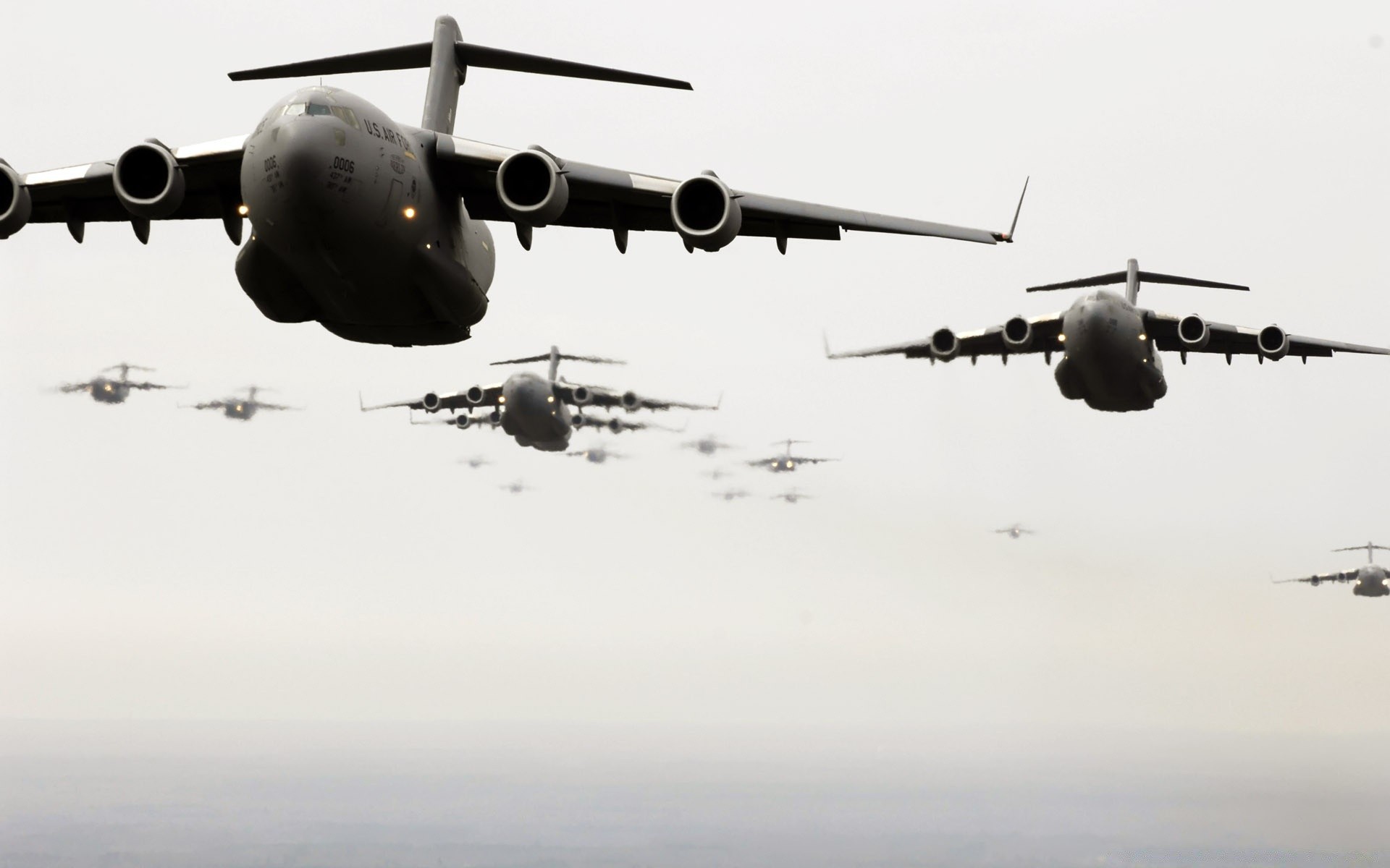 Gruppo di elicotteri militari sul campo di decollo contro il sole al tramonto