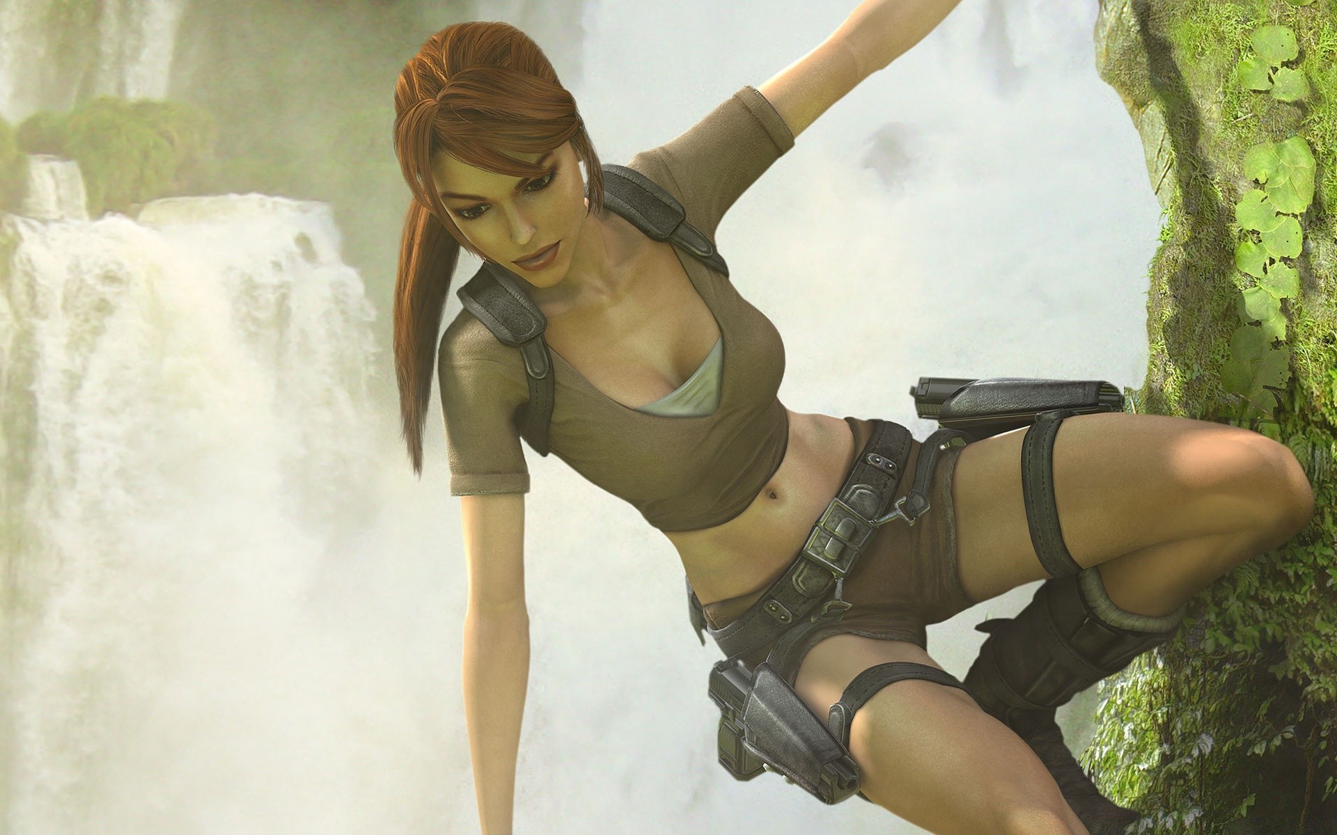 Figura della donna vicino alla cascata