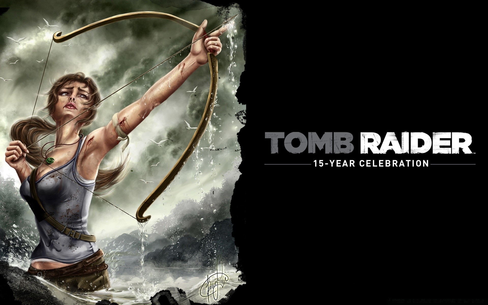 Lara Croft in un falò in una grotta