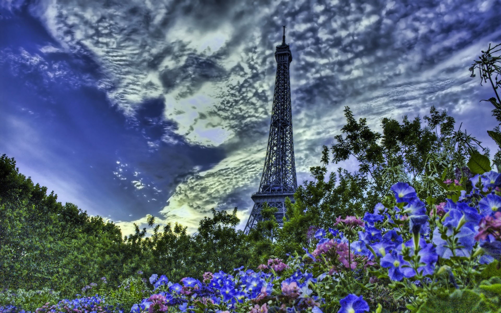 . La Torre Eiffel attraverso la piazza ai raggi del tramonto
