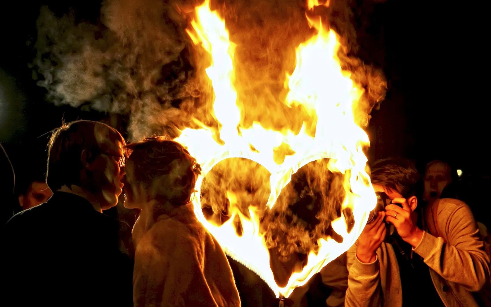 Coppia che si tiene per mano in un servizio fotografico sul campo