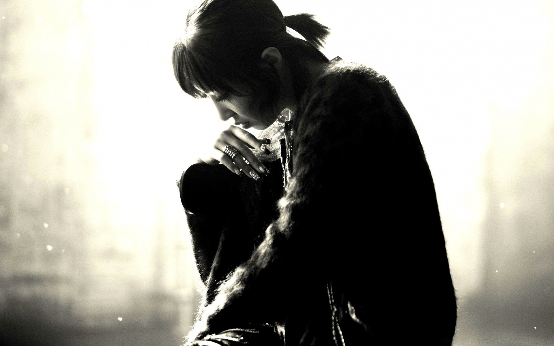 Foto in bianco e nero di un uomo mascherato su sfondo scuro