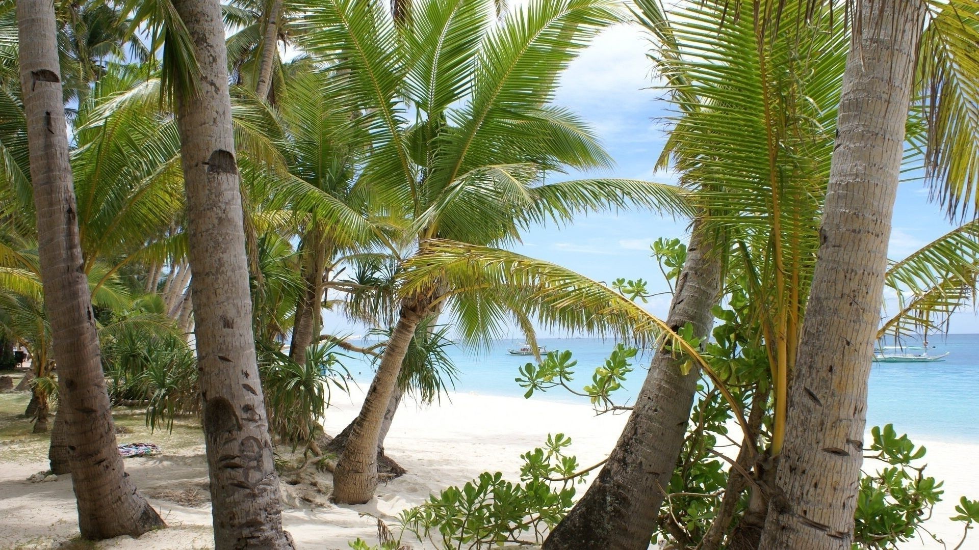 Vegetazione tropicale e cielo blu con nuvole bianche