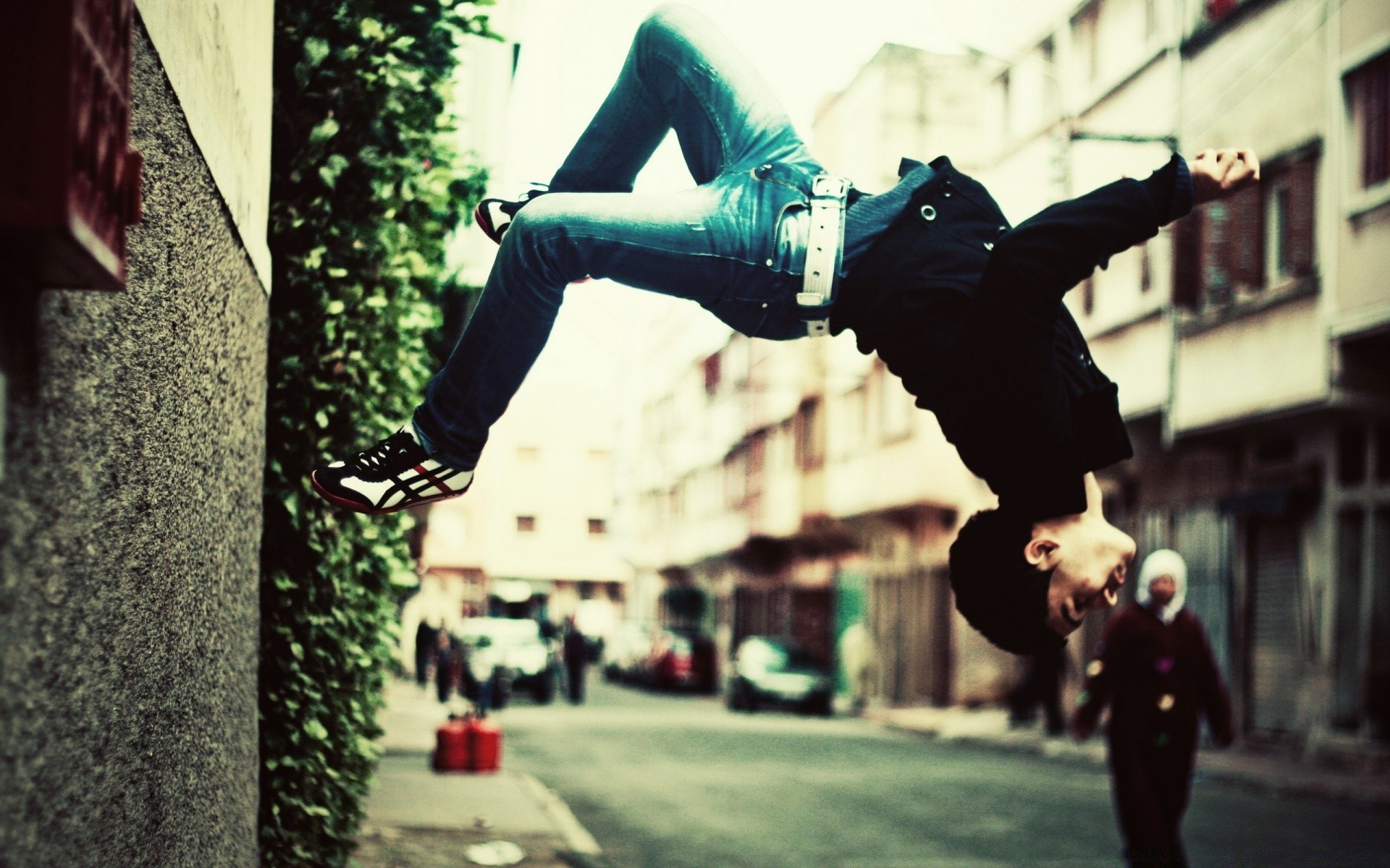 Un ragazzo fa un trucco da parkour