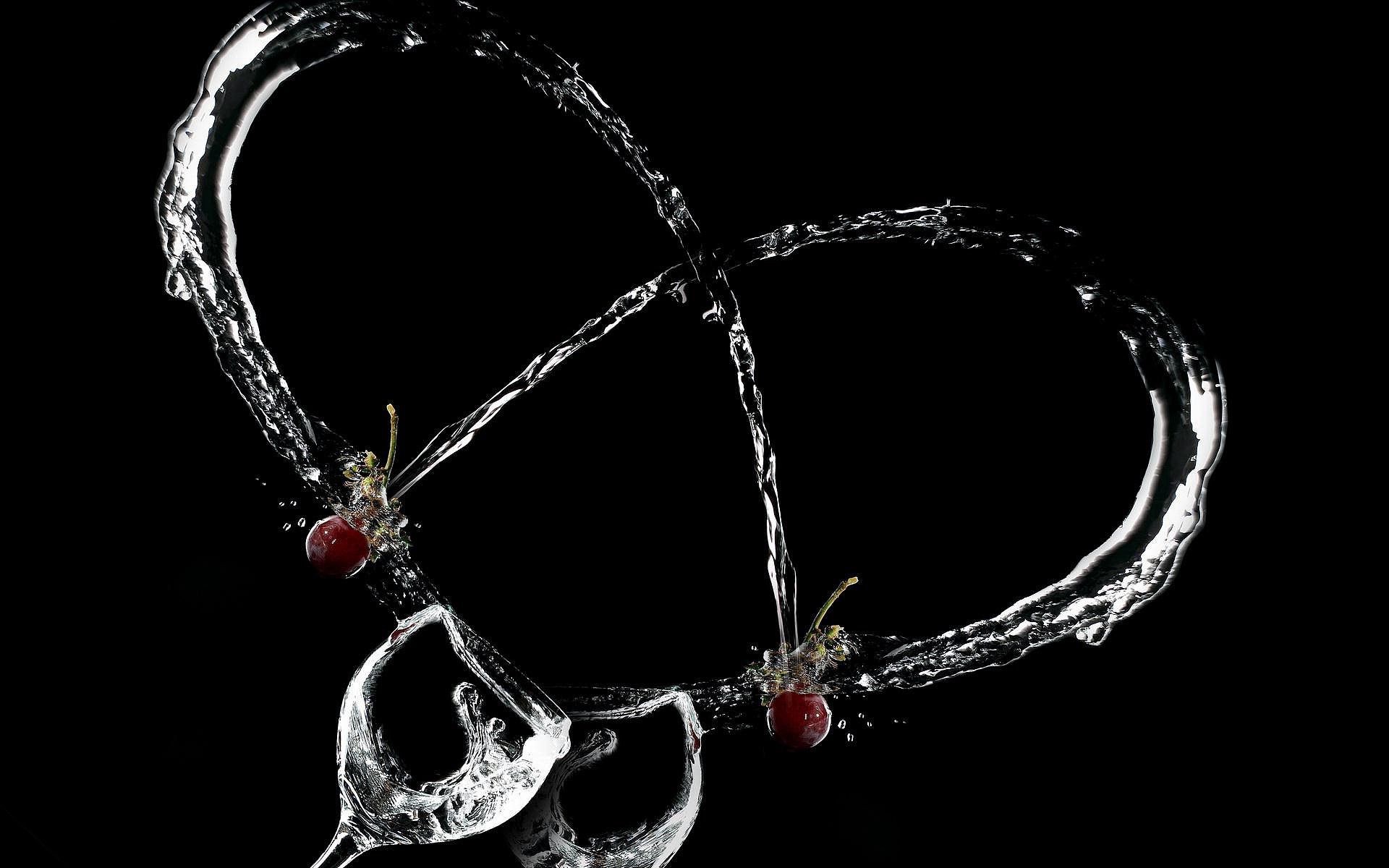 Goccioline di acqua su sfondo verde con i raggi del sole