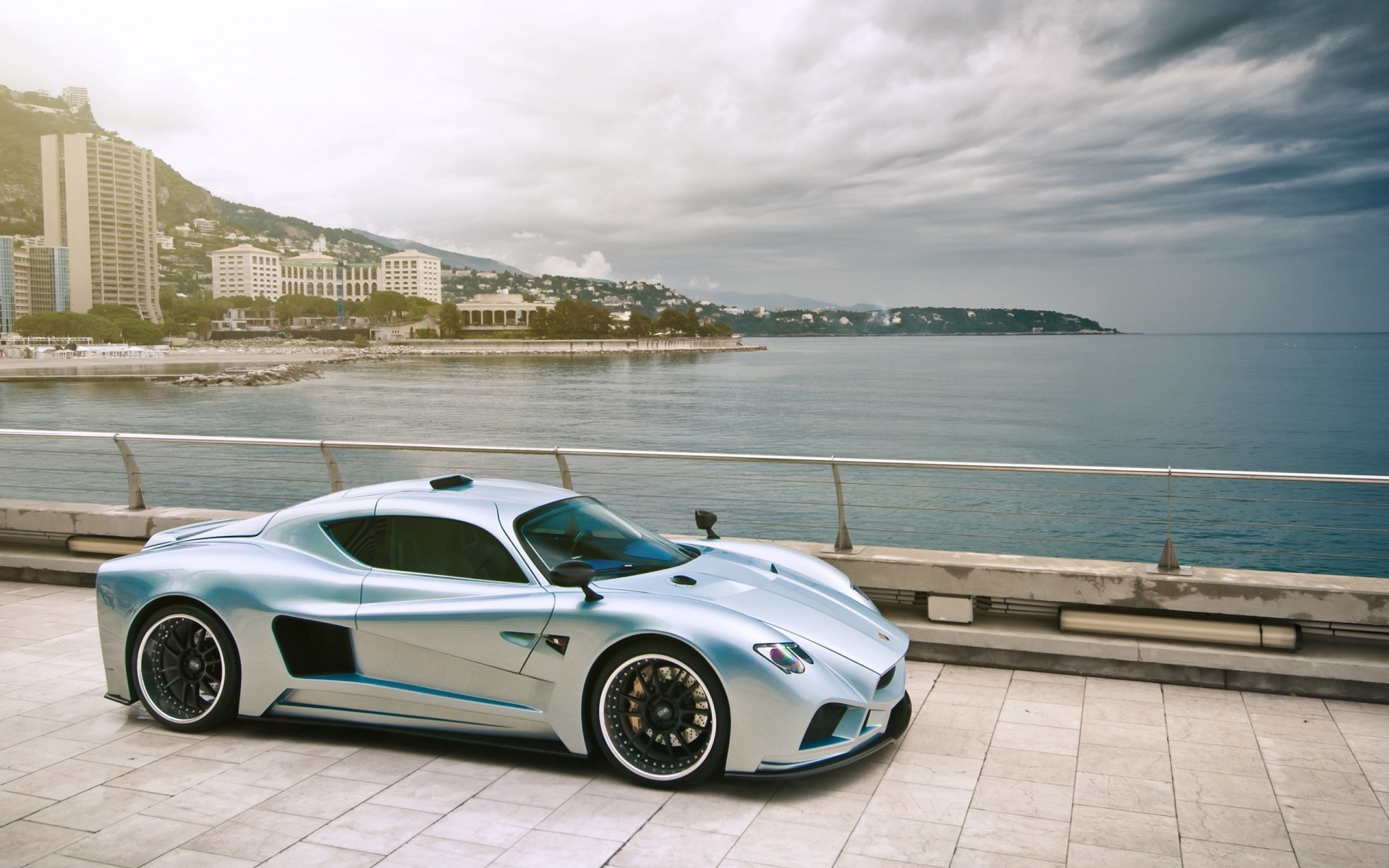 Sogno di viaggio, un'auto sportiva d'argento sul molo