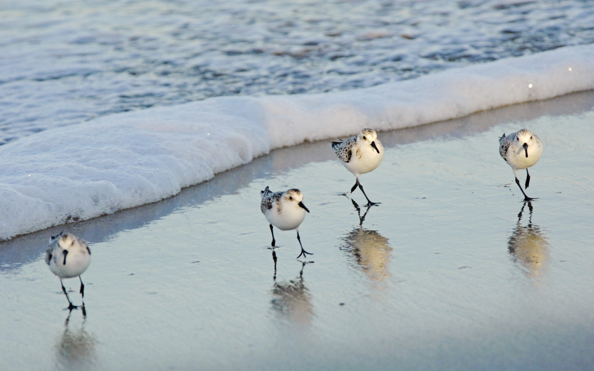 Libertà, cielo, uccelli volanti bianchi nel cielo blu