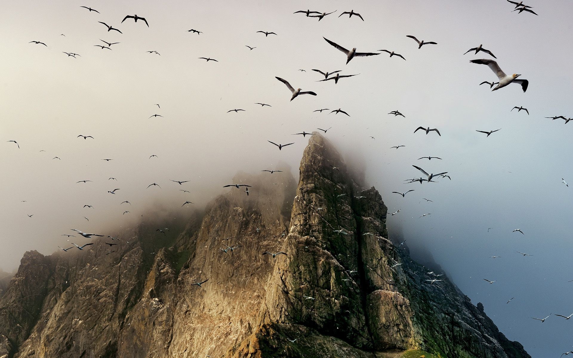 Illustrazione scura dell'astrazione della ragazza e degli uccelli