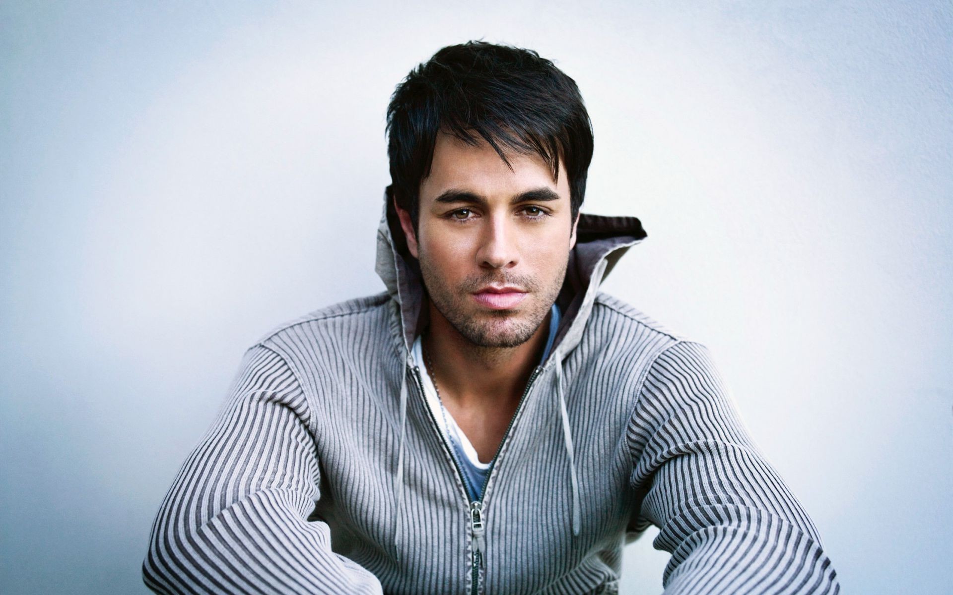 Uomo in giacca grigia su sfondo chiaro