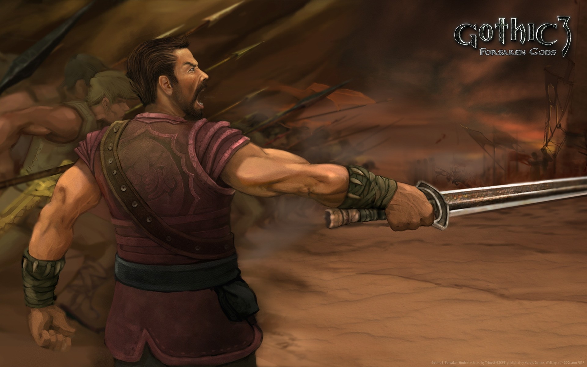 L'uomo attacca con la spada in mano