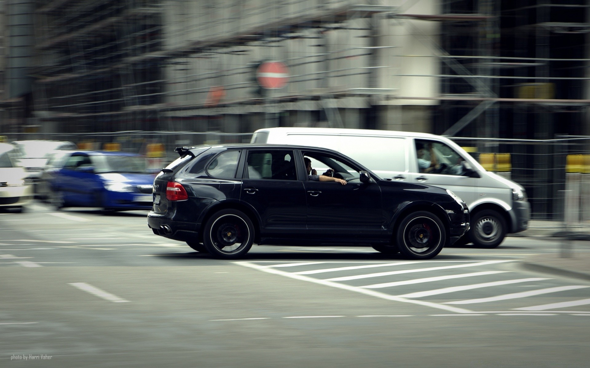 Incrocio urbano trafficato. Le auto percorrono la strada
