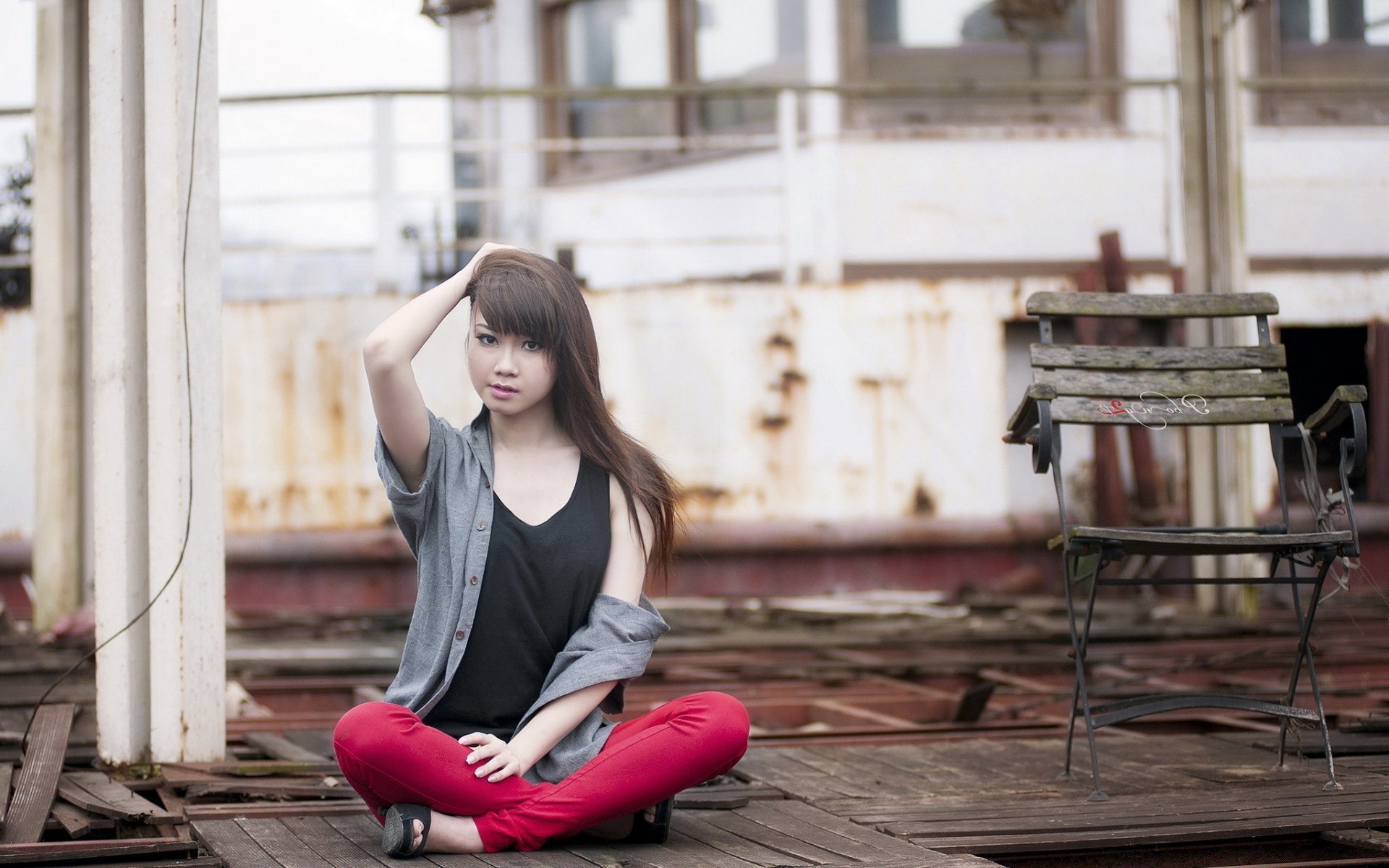 Foto di strada di una ragazza sullo sfondo di una vecchia recinzione