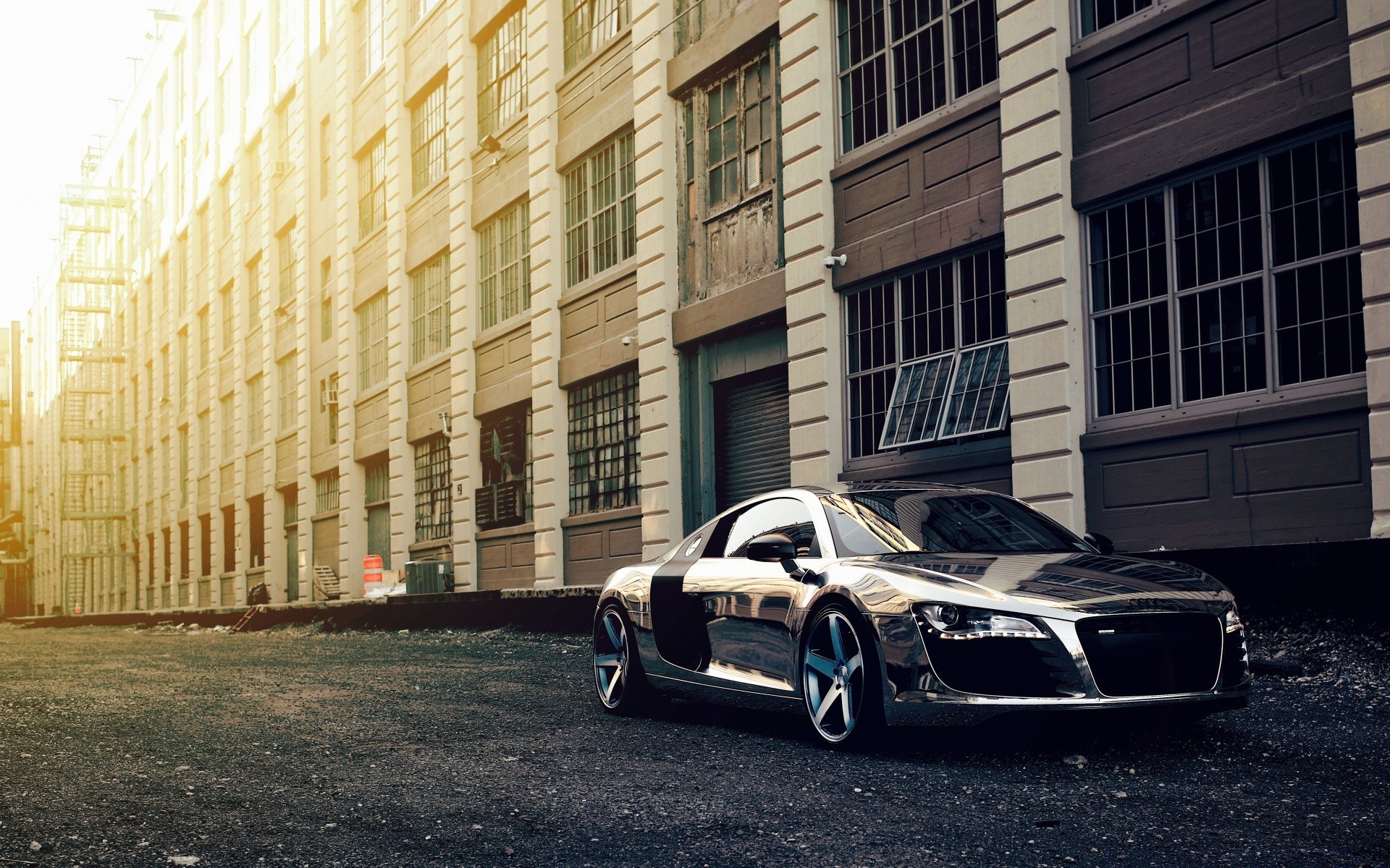 Auto super bianca come la neve su uno sfondo di grattacieli