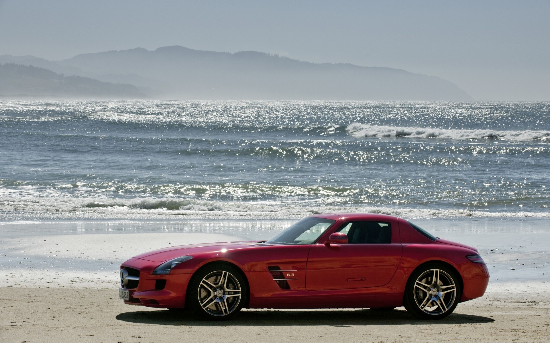 Auto rossa sullo sfondo del mare