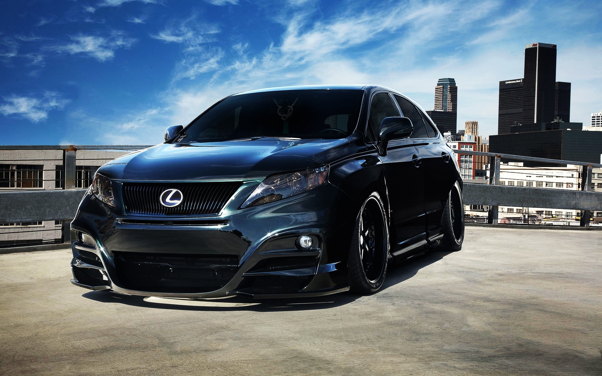 Auto nera sul tetto del grattacielo, mozzafiato