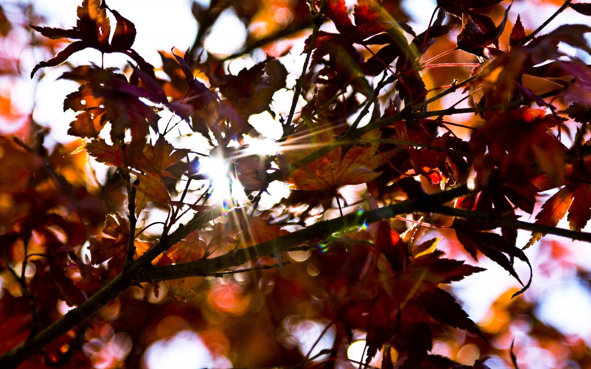 I raggi del sole si fanno strada attraverso i rami degli alberi con foglie autunnali