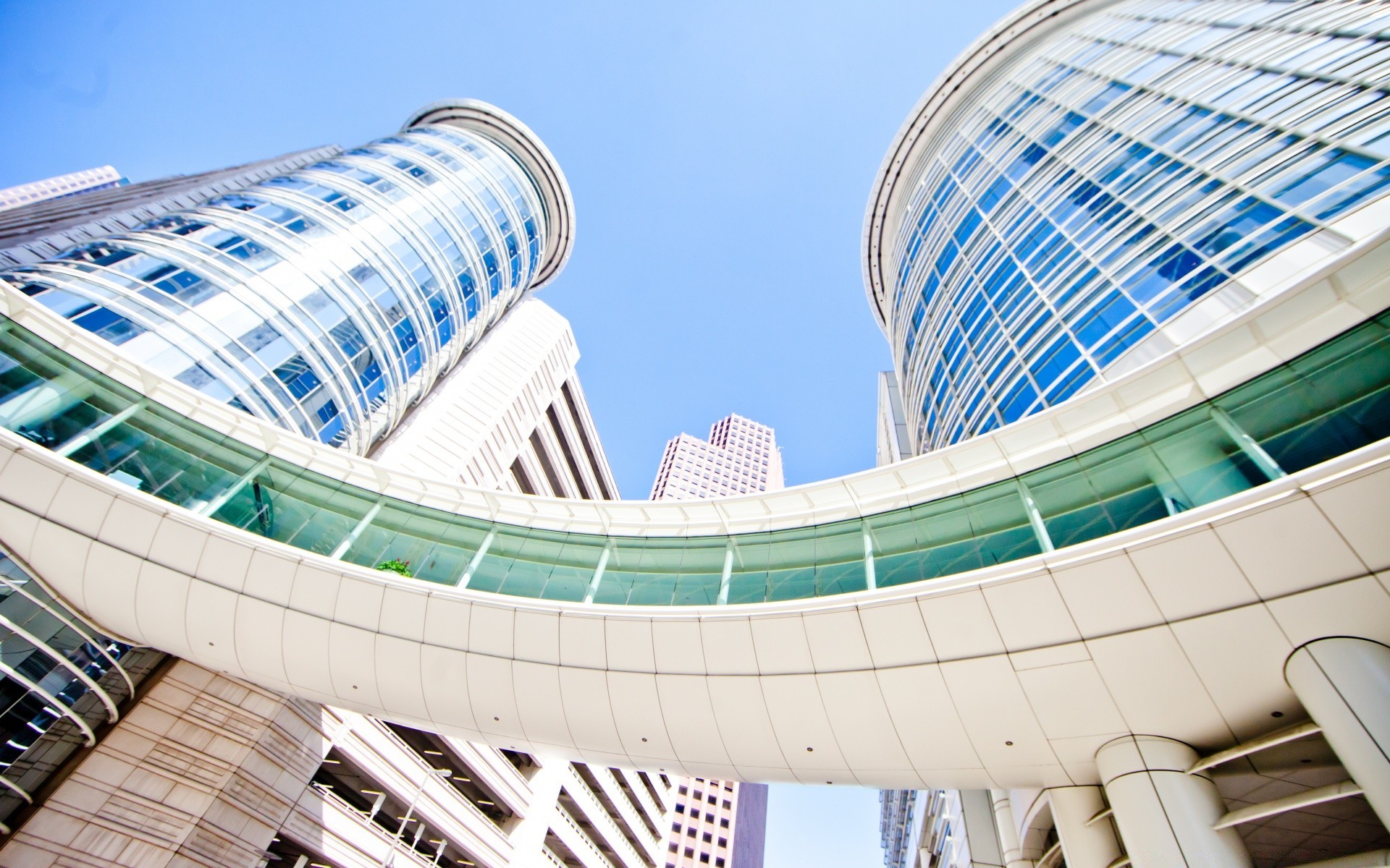 Architettura moderna. grattacieli con una transizione insolitaArchitettura moderna. Grattacieli con una transizione insolita