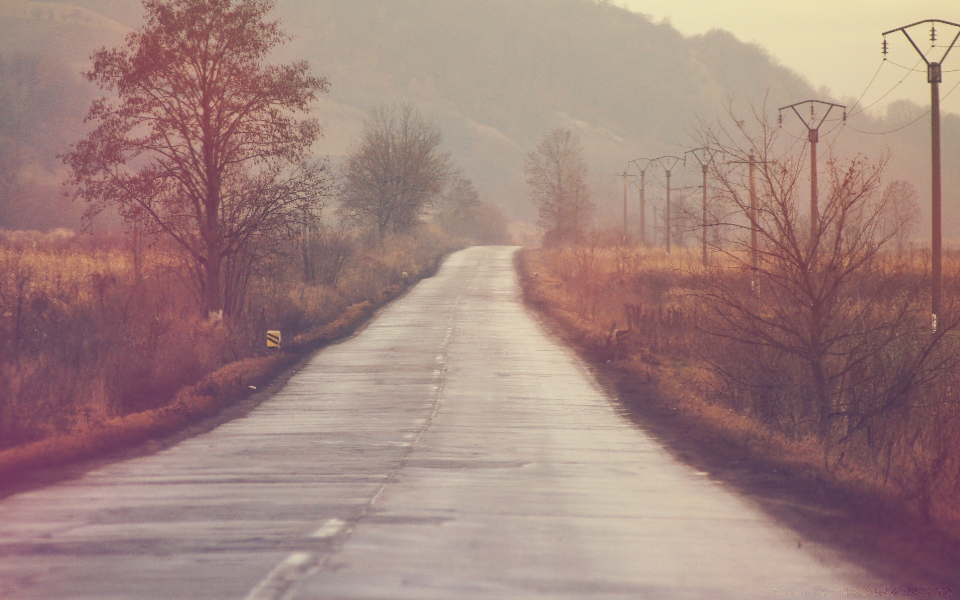 Strada dritta e pilastri a destra