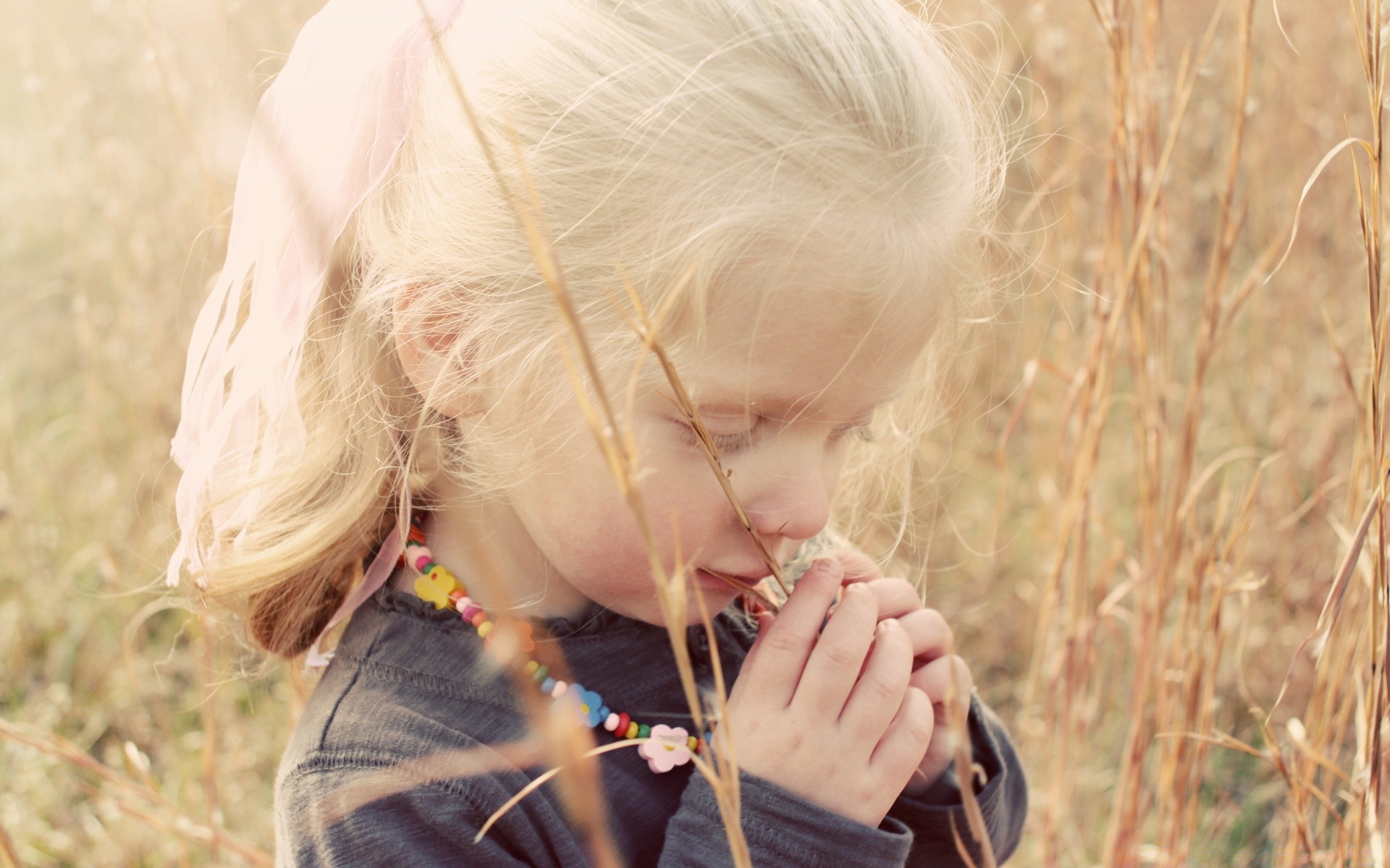Bambino sorridente nella natura, romanticismo