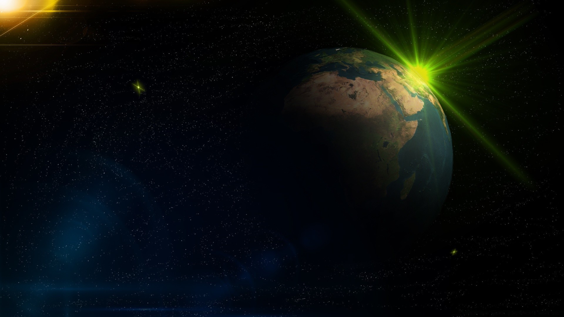 Pianeta terra nello spazio con il riflesso del solePianeta Terra nello spazio con il riflesso del sole