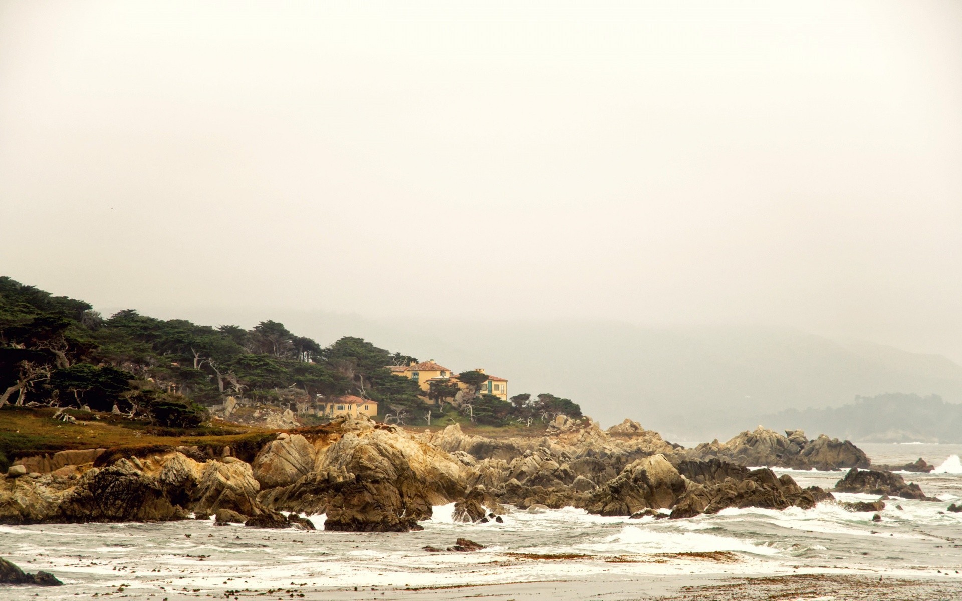 Vista di un albero vicino al pavimento in una mattina nebbiosa