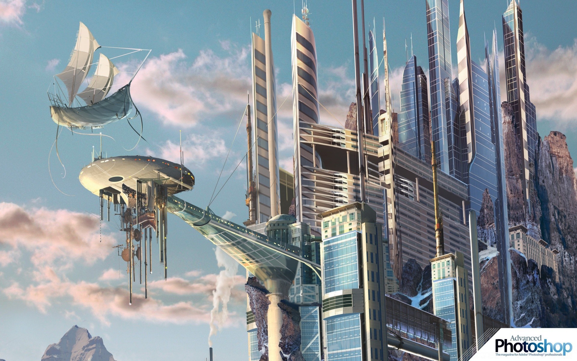 Cascata fantastica e uomo con macchina volante con logo oblivionCascata fantastica e uomo con macchina volante con logo Oblivion
