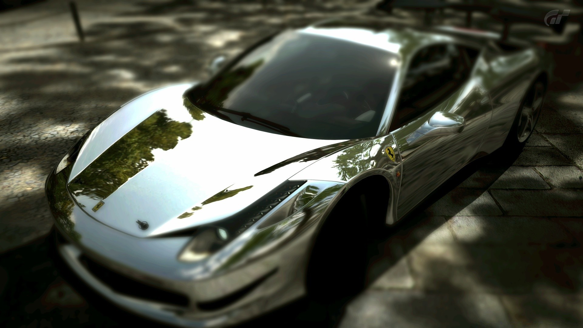 Audi R8 quattro bianca sullo sfondo di una città nuvolosa nel gioco per computer gran turismo