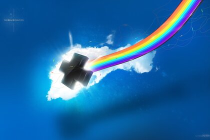 Arcobaleno nel cielo vola tra le nuvole