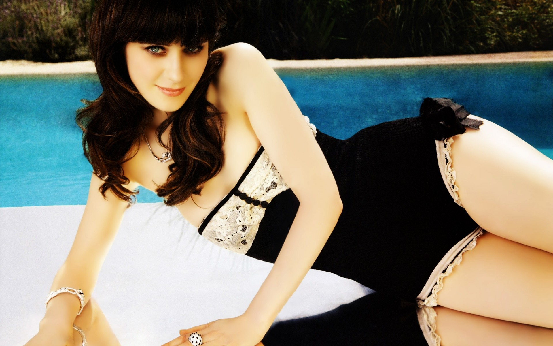 Costume da bagno con volant su una ragazza affascinante