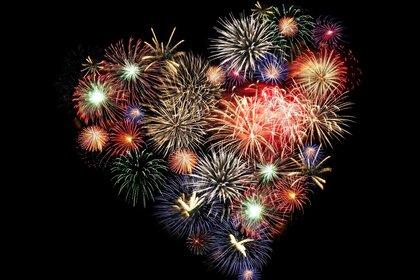 Fuochi d'artificio festivi a forma di cuore
