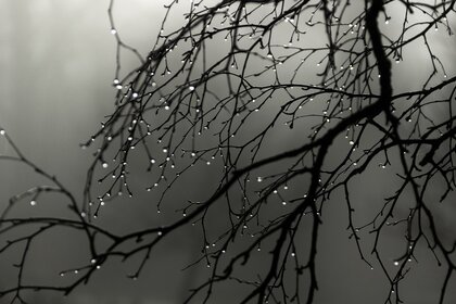 Ramo di albero nudo su sfondo grigio